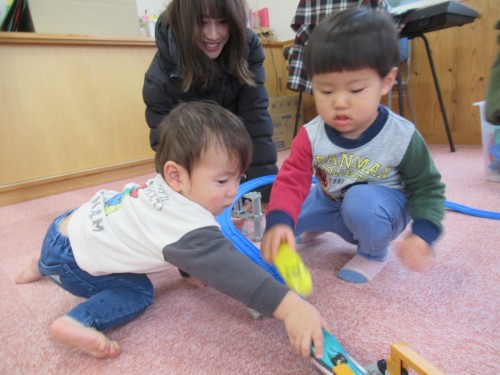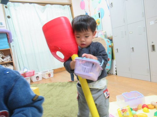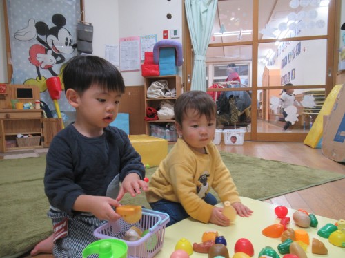 「いらっしゃいませ~」と先生が言うと「これちょうだい」って上手に言えたね