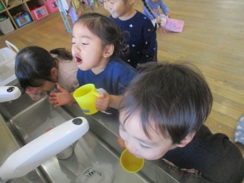 手も隅々まで洗って、難しいうがいにも挑戦しています!