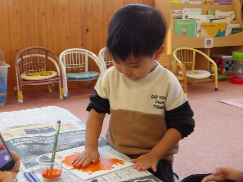 今日は、アクリル絵の具遊びをしました!!