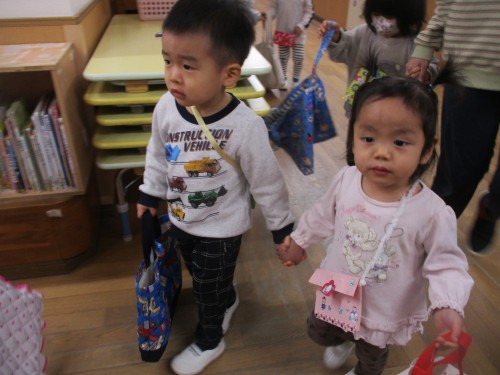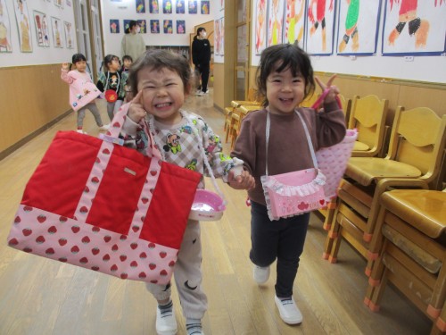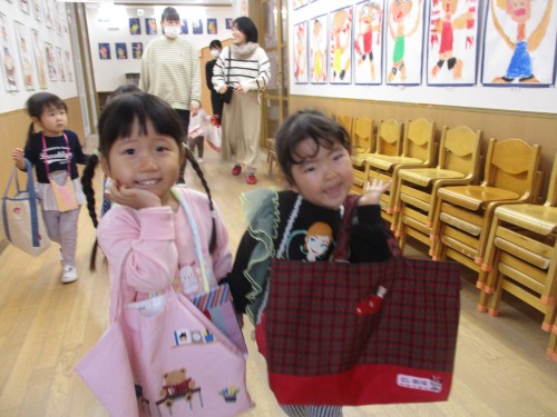 お家で作ってもらった鞄を首にかけてレッツゴ~~~🎵