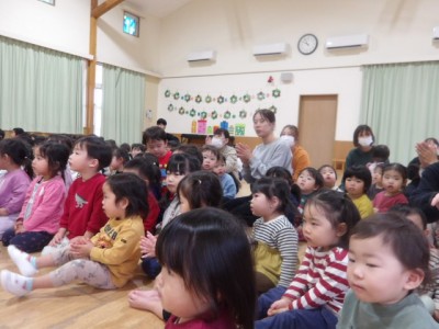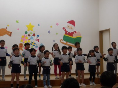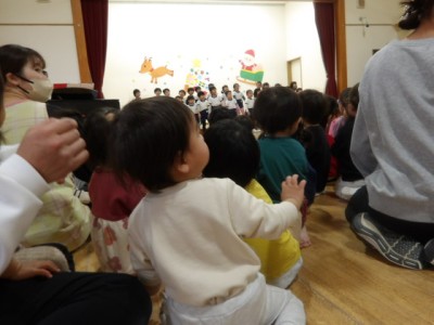 上のクラスの子どもたちの元気な歌声や職員によるクリスマスソング演奏を楽しみました✨