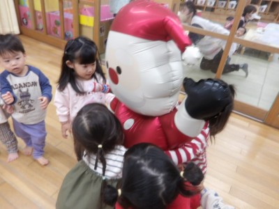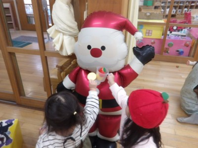 今日はクリスマスということでりす組のお部屋にサンタさんが遊びに来てくれました!