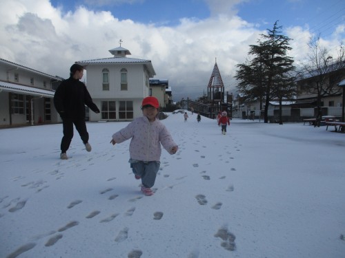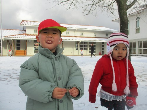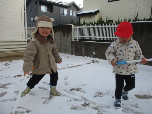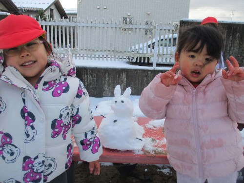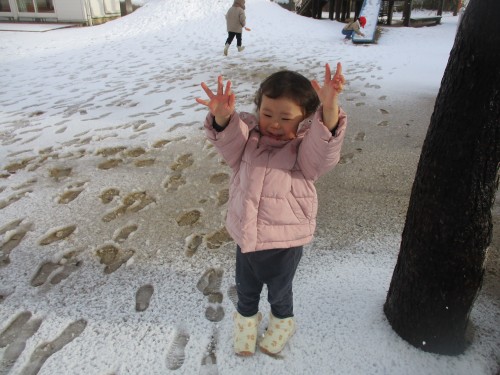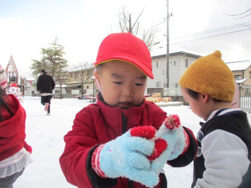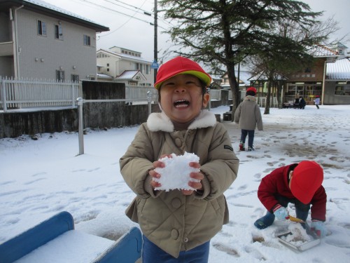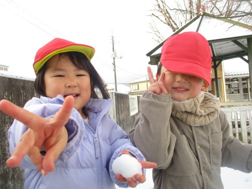 雪玉も作ったよ😊冷たかったけど楽しいね🎵