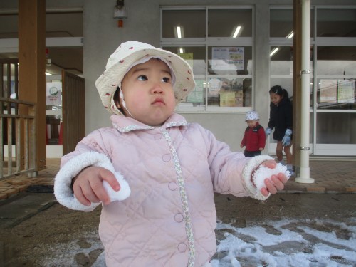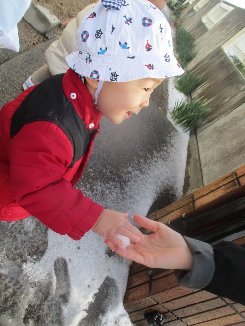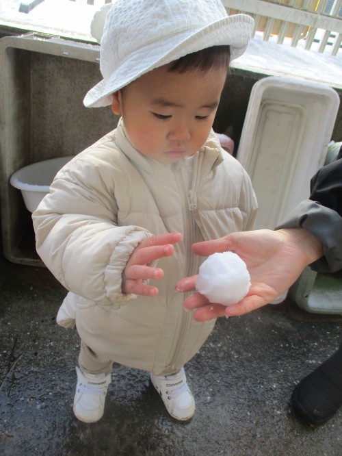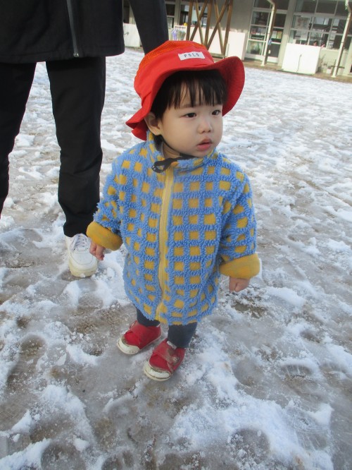 今日は雪が降り、保育園にも雪が積もっていたので、少しだけ触りにいきました❄