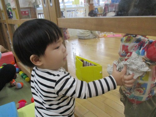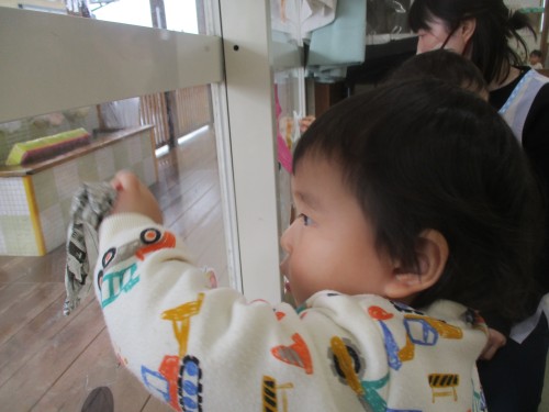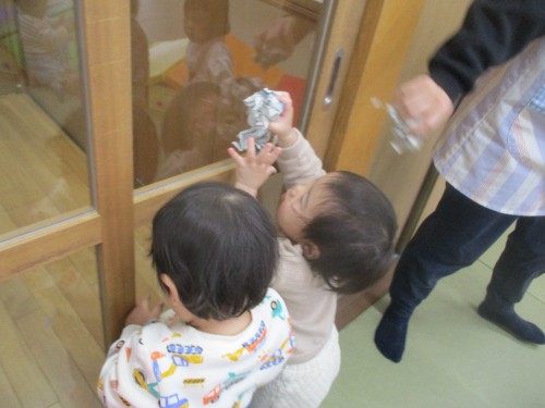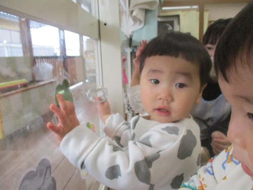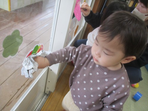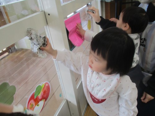 そのあとお部屋で遊んでいると、りす組さんが窓ふきをしておられてので、ひよこ組も真似っこしました⭐