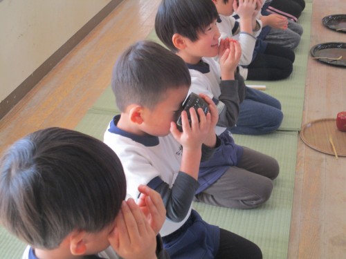 「お茶にがい」「美味しい!!」「粉を入れるのが難しい」とたくさん言っていました。