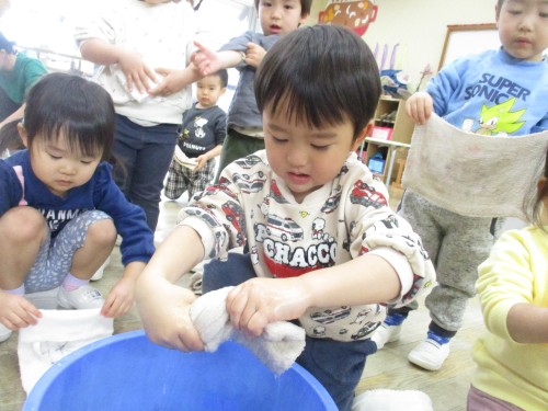 1月の清掃の日は、雑巾の絞り方を教えてもらい、