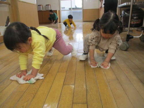 保育室や廊下を雑巾がけをしました✨