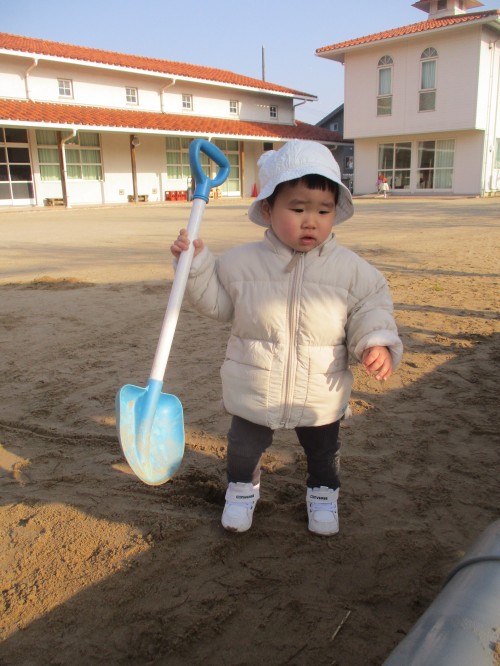 自分の身長と同じくらいのスコップを手に入れていました!