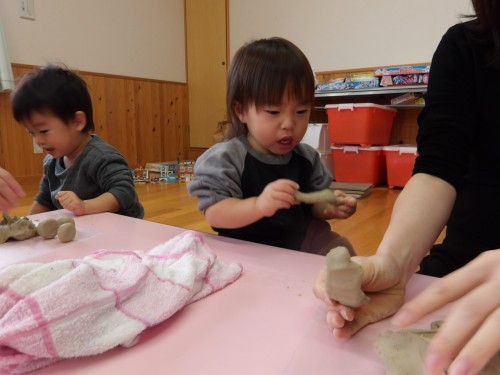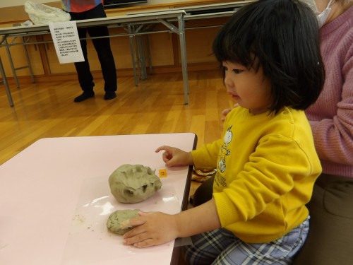 粘土の感覚でこねたり、丸めたりして好きな形に作りました!