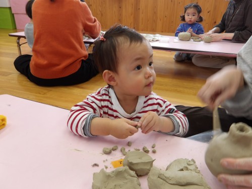 今日は、8組の親子と陶芸教室をしました😊