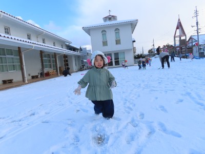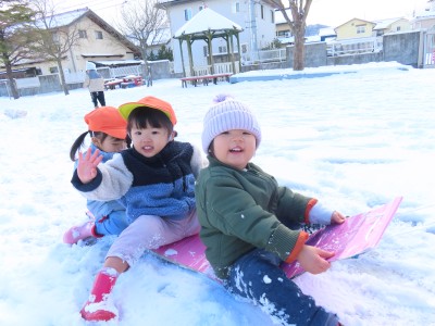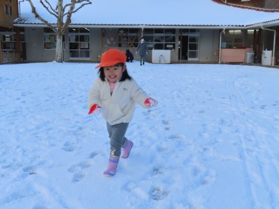 今日はたくさん雪が積もっていたので園庭に行き、雪遊びを楽しみました!