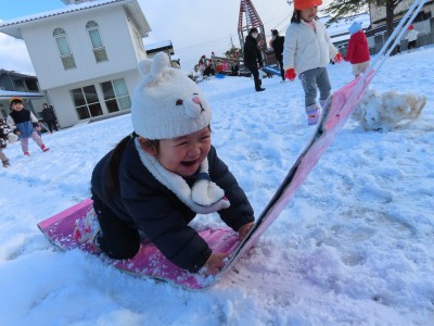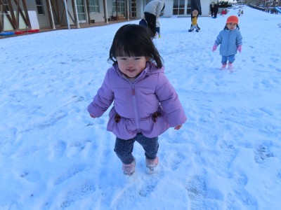 雪に大興奮の子どもたち。思いっきり走り回ったり、雪の電車に乗って滑ったりして雪遊びを存分に楽しみました✨