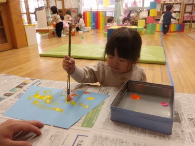 スタンプのようにする子やお絵描きのようにする子などいろいろなやり方があって面白かったです!