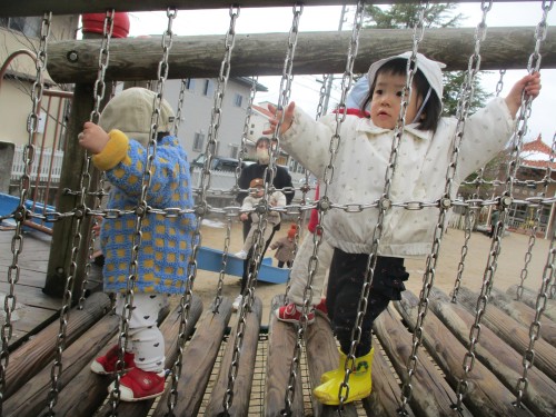 ハロータワーの揺れる橋を順番に渡っていく子どもたちが可愛いです🐤