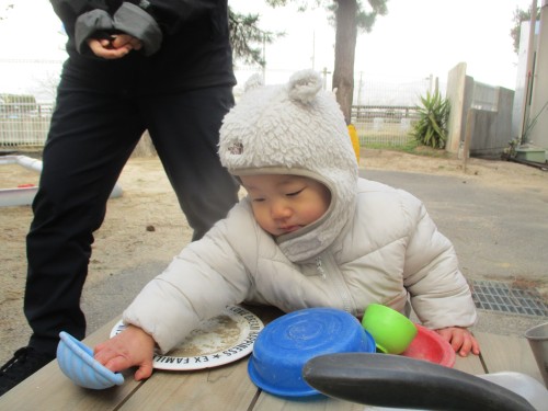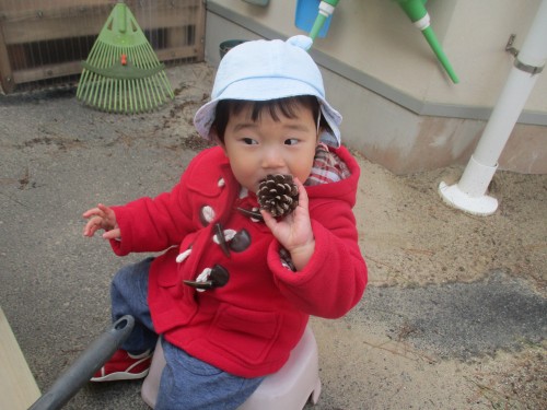 松ぼっくりを食べるふりをしたり、」コップで飲む真似をしたりとままごとが上手になってきましたよ☆