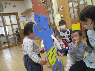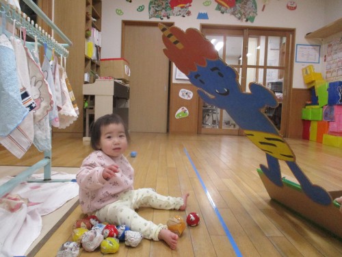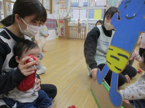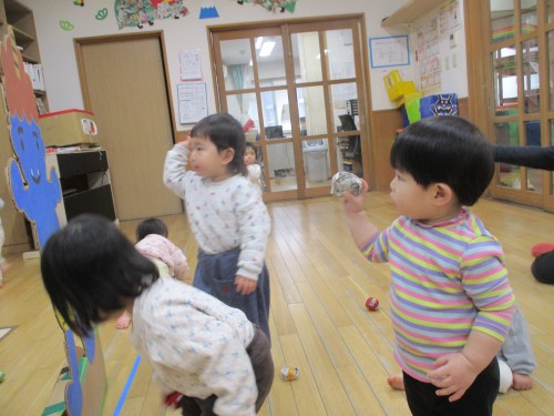 この鬼が怖くて逃げる姿や、楽しくボールを投げる姿など様々な姿が見られました!