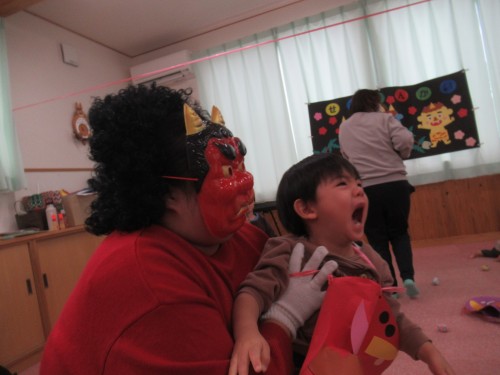 こども園も節分会があり、かもめ組さんはえがおハウスの節分会に参加しました😊