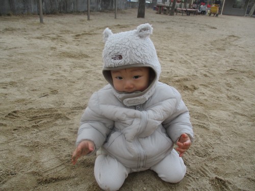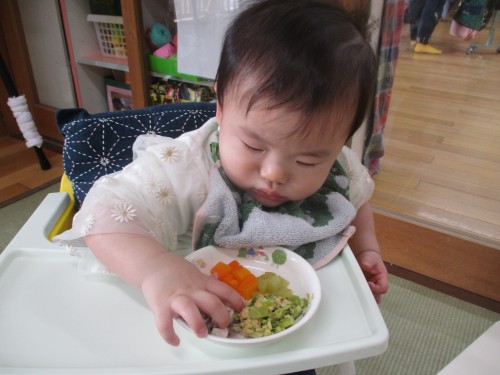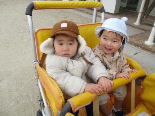 散歩車に乗ってぐるぐる園庭をお散歩!風が気持ちかったね😊