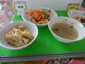 明日は0~2歳児の発表会なので、今日の給食はひばり組さんのリクエスト献立でした。