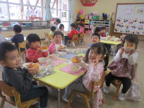 美味しい給食とおやつを食べて元気パワー満タンです💕