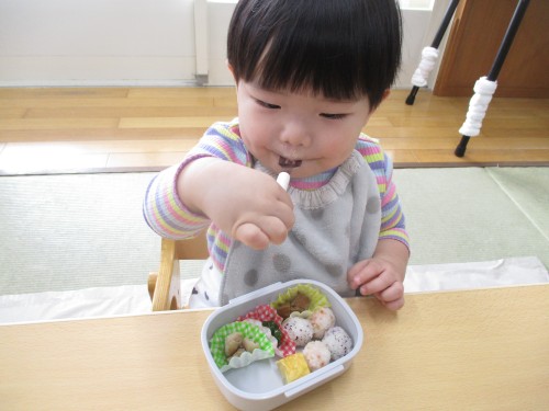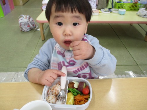 1歳未満の子どもたちは離乳食なので、1歳になったらみんなでお弁当を食べれるのを楽しみにしています🎵