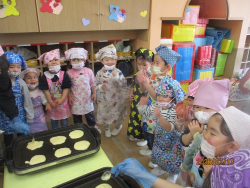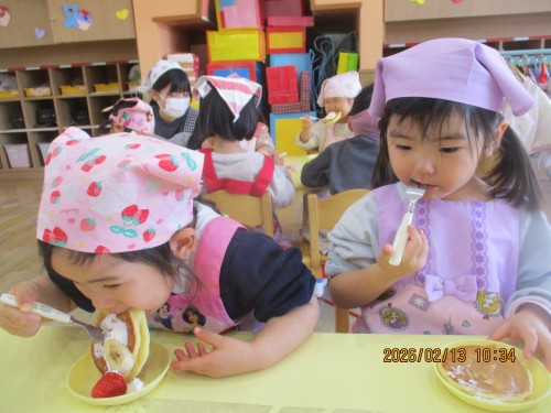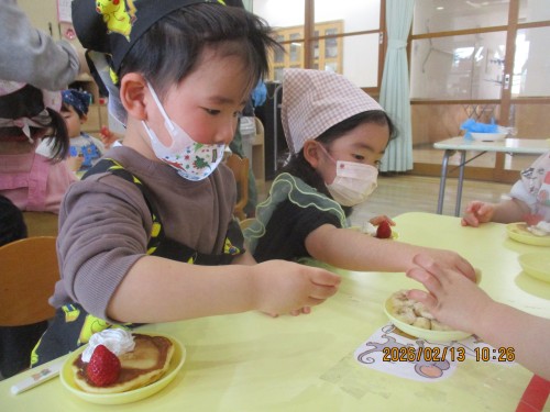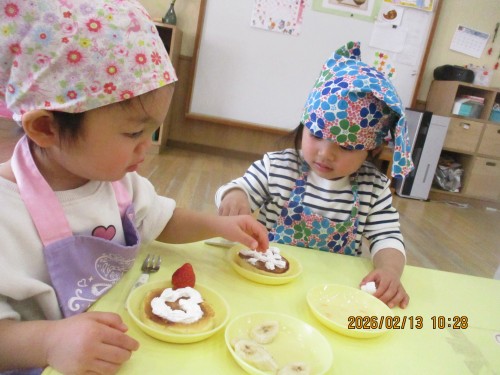 発表会、みんなが頑張ったのでホットケーキを作りました♡