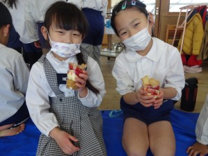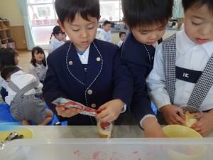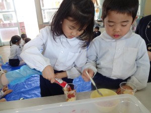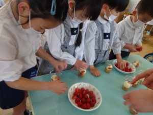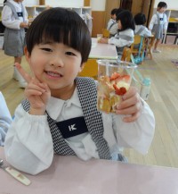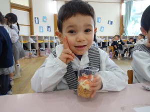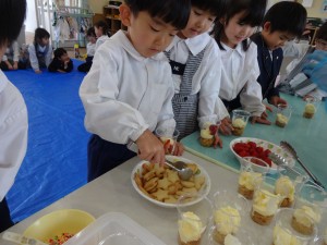 おやつは自分たちでイチゴやクッキーを盛り付ける「パフェ」でした🍓