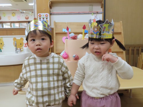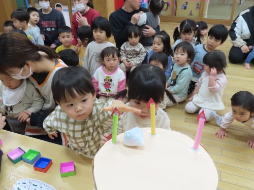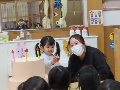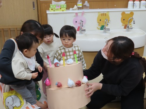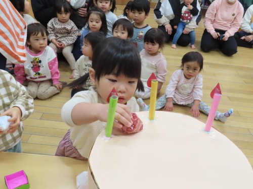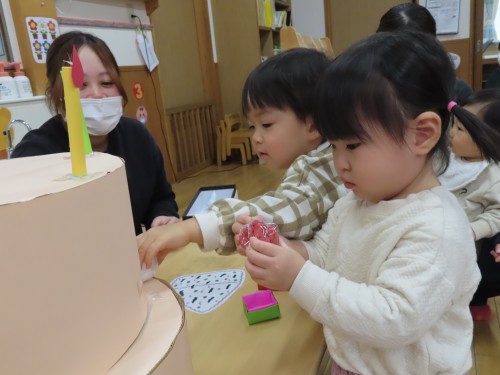 お誕生児さんがケーキ🎂に飾り付けをしてくれました!