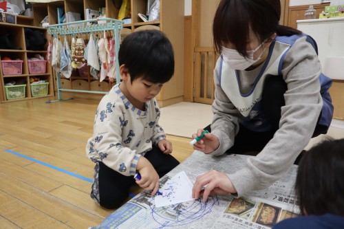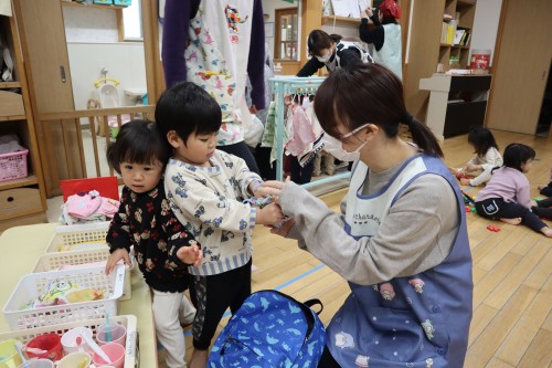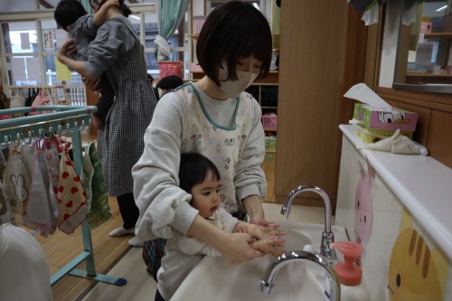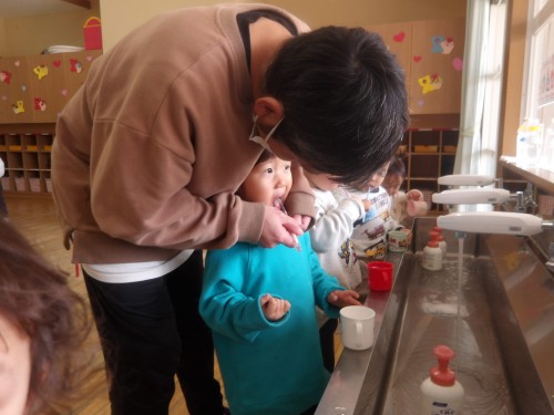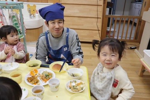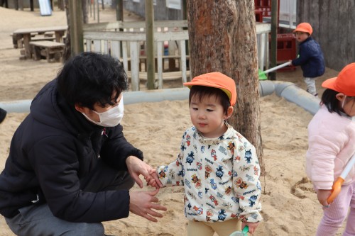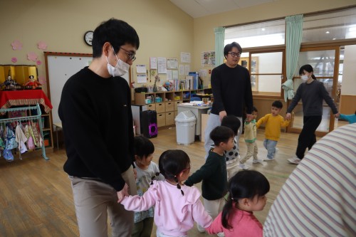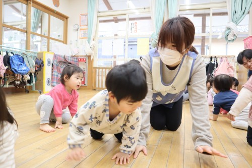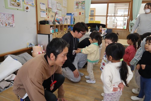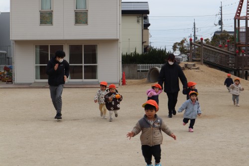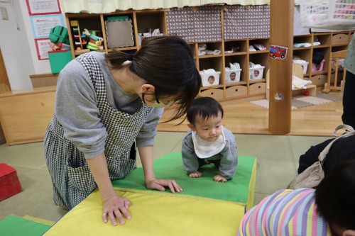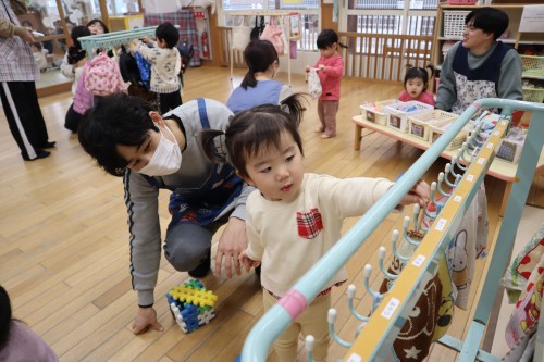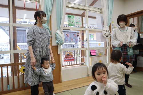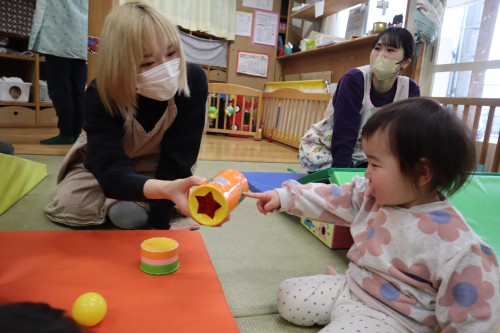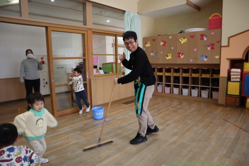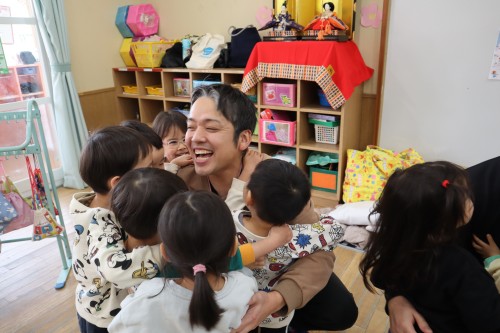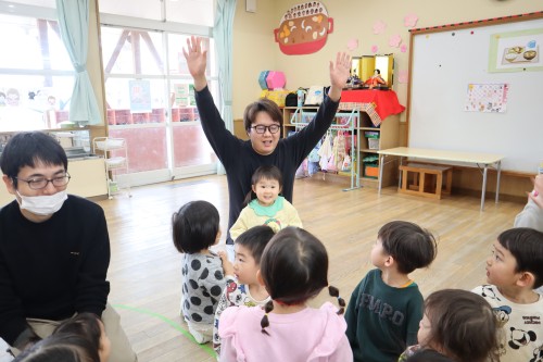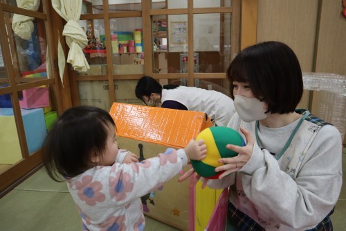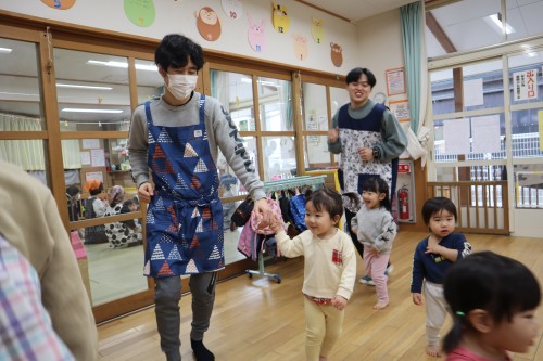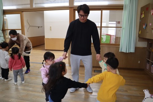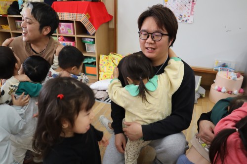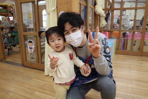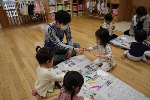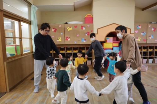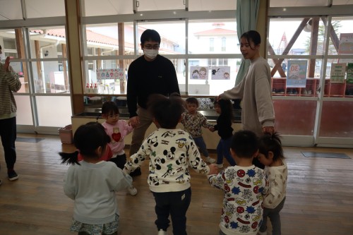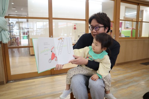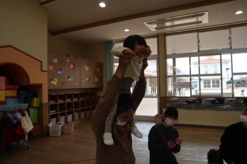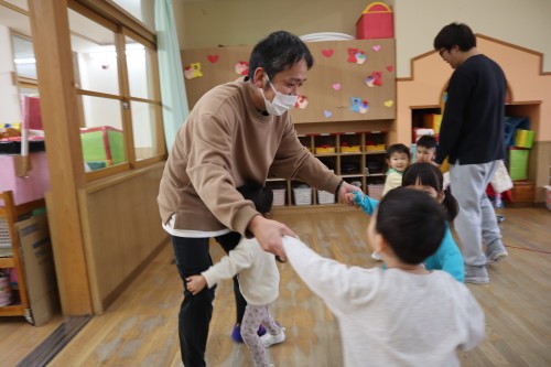 お父さん、お母さんと一緒に保育園で遊べて、