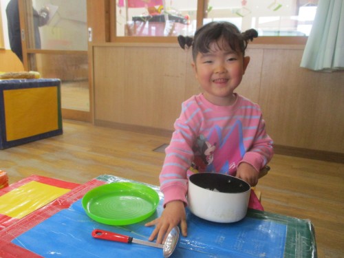 別のお家で作ったごちそうを廊下でピクニック~🎶