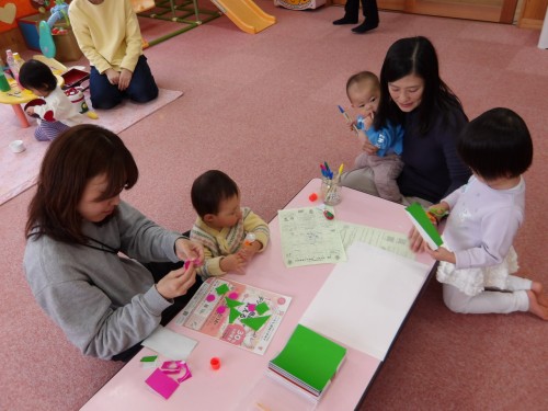 折り紙をちぎったり、のりで貼ったり、