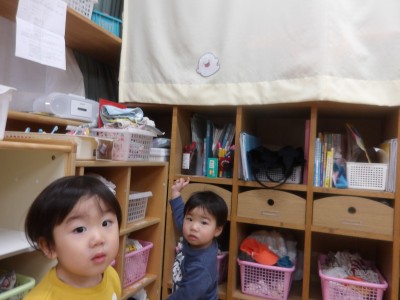 昨日 遊戯室で遊んでいると穴の中におばけを発見しました!