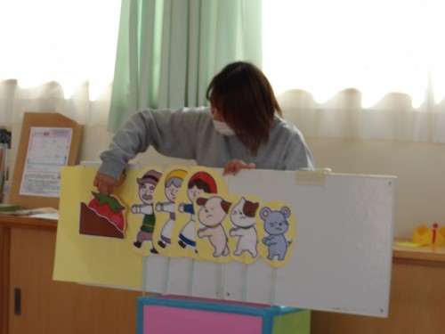 職員の出し物は、「おおきないちご」のペープサートでした🍓
