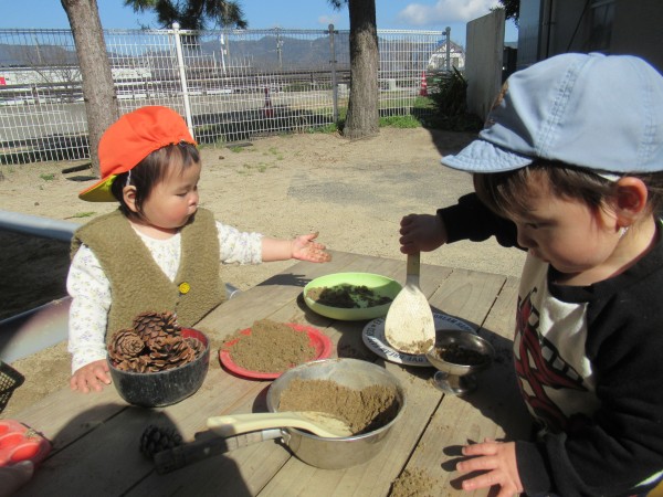 中庭に出て遊びました。