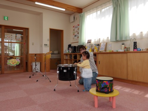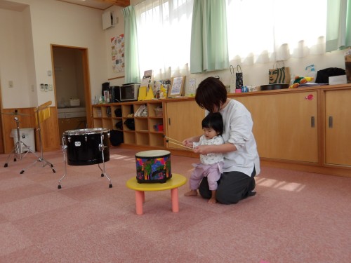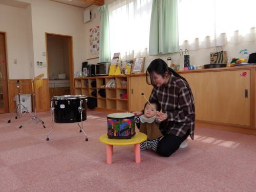 曲に合わせて太鼓やシンバルを叩きます🥁