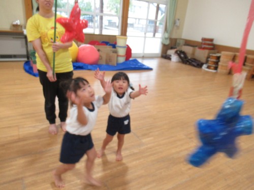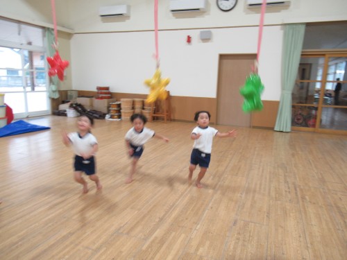 運動会では、ジャンプしたり四つん這いになったり、楽しく体を動かすことを目的としています