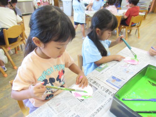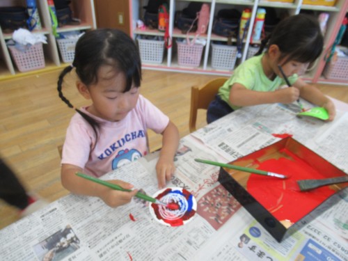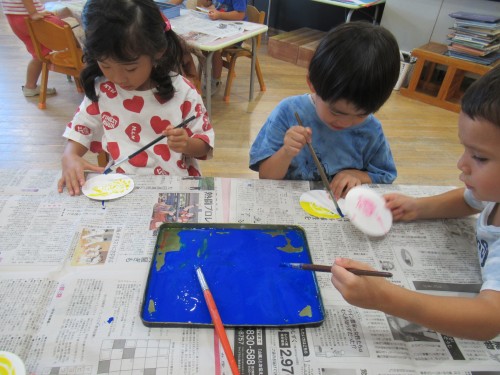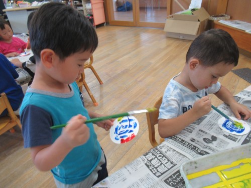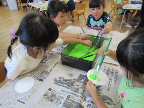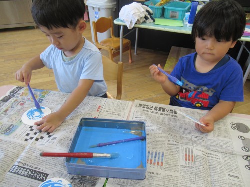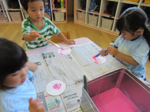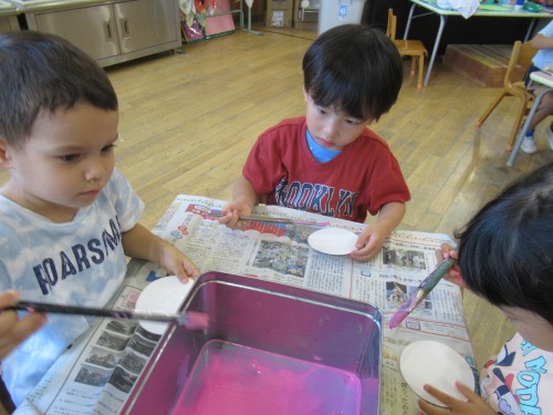 白い紙皿に描いた模様が出てきて興奮気味の子どもたちでした!
