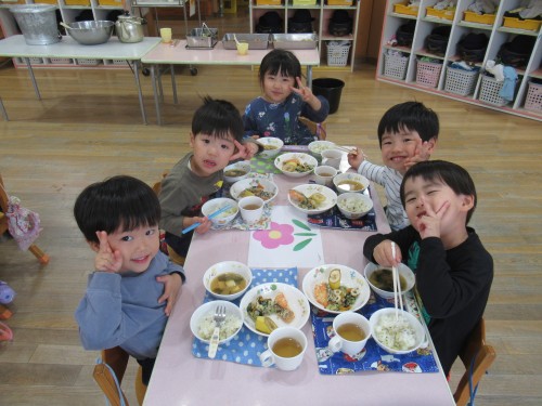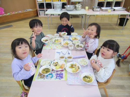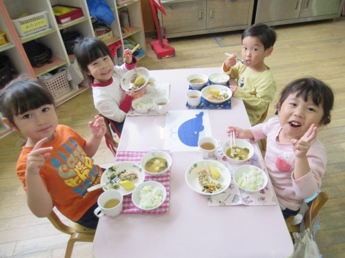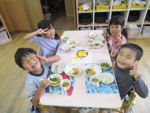 今日の給食はつばめ組の好きな味噌汁が出ました!