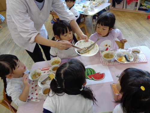 骨の取り方を教えてもらい、よく噛みながら食べることができました🌟
