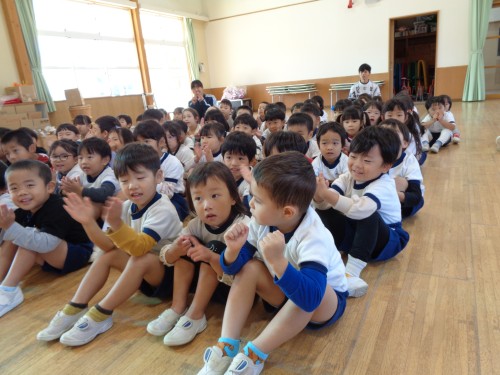 今日は、強弱のフォルテとピアノを知り、ハンドクラップで演奏しました♪