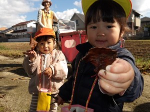 今日みんなで集めた葉っぱは秋の制作に使用する予定です!