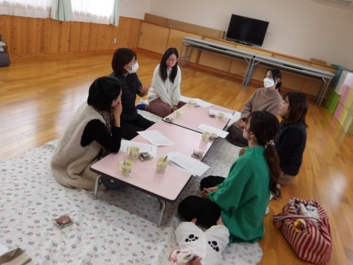 こども園、副園長の話を聞いたり、お茶とお菓子を食べながら、親御さんの育児、悩みなどの話もしました✨